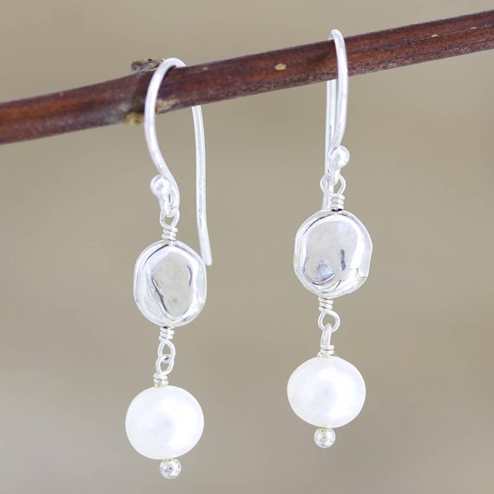 Hand Made Cultured Freshwater Pearl Dangle Earrings 'Song of Paradise in White' Item ID: 2671789742