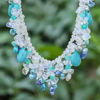 Hand Made Cultured Pearl and Howlite Pendant Necklace 'Teal Palace' Item ID: 2671797184
