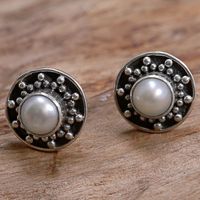 Hand Made Cultured Pearl Stud Earrings from Indonesia 'Glowing White Happiness' Item ID: 2671475806