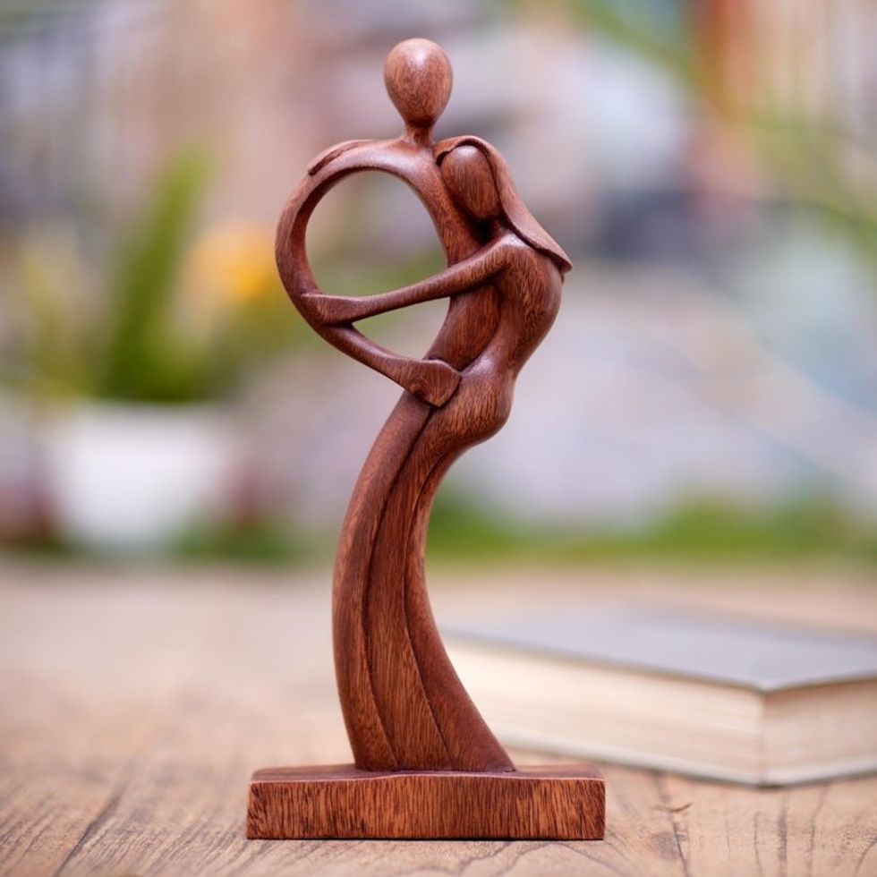 Hand Made Figurative Suar Wood Statuette 'Hug Me' Item ID: 2671747097
