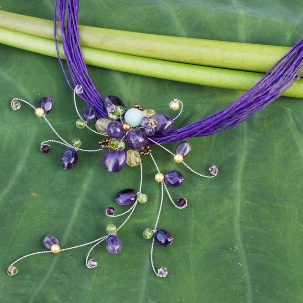 Hand Made Floral Amethyst Necklace 'Floral Joy' Item ID: 2669926346