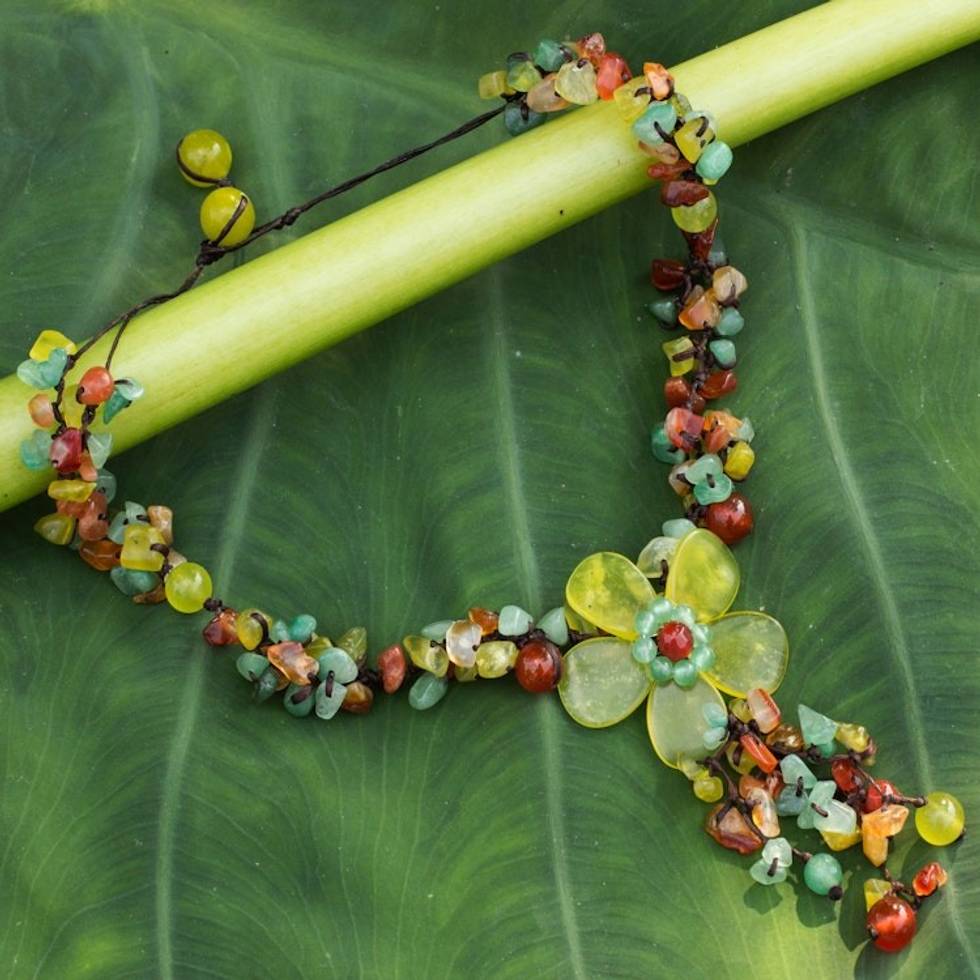 Hand Made Floral Carnelian and Serpentine Necklace 'Dazzling Bloom' Item ID: 2669927554