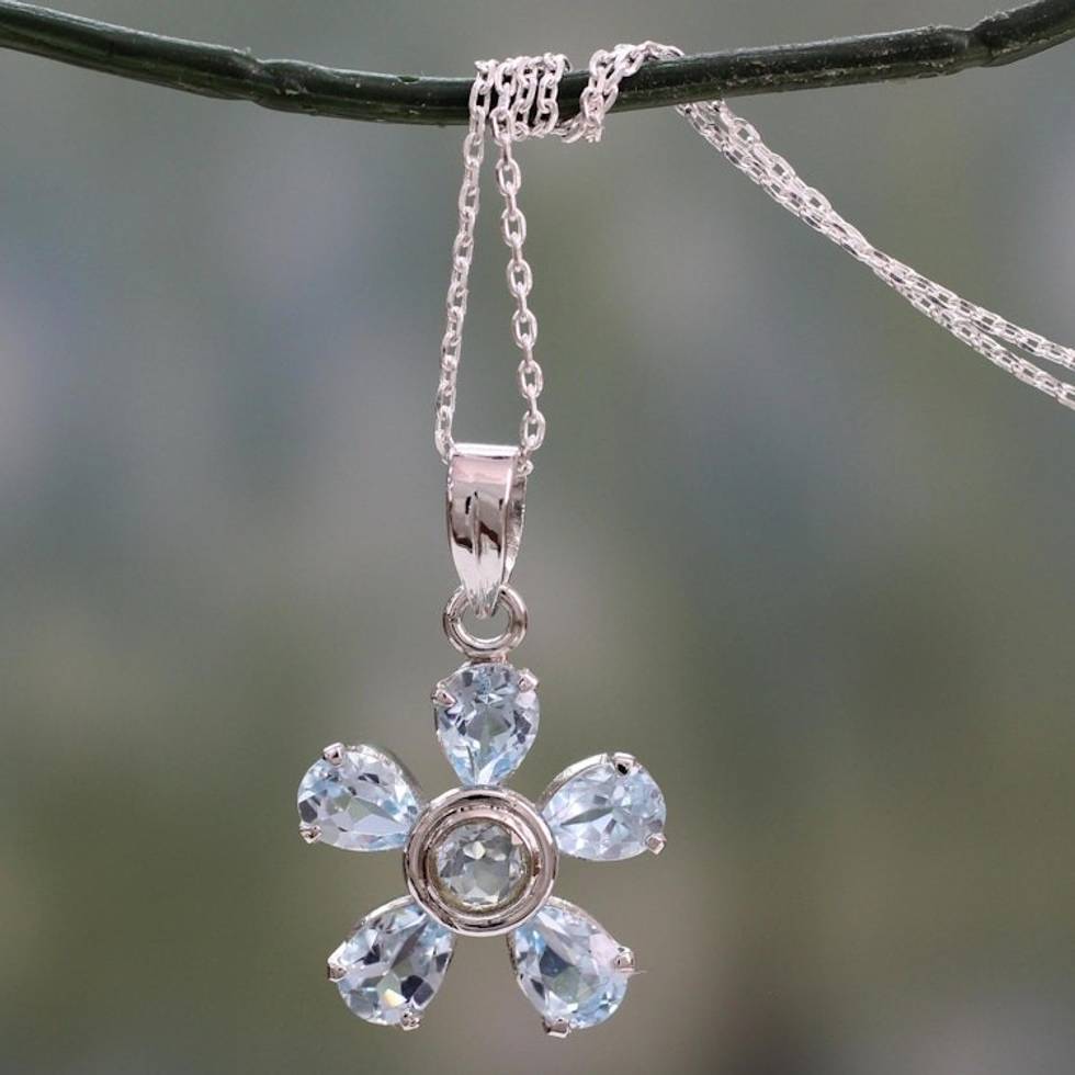 Hand Made Floral Sterling Silver and Blue Topaz Necklace 'Forget-Me-Not' Item ID: 2671618593