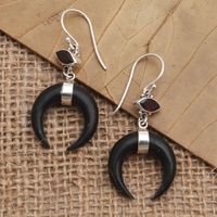 Hand Made Garnet and Sterling Silver Dangle Earrings 'Mysterious Crescent' Item ID: 2671670648