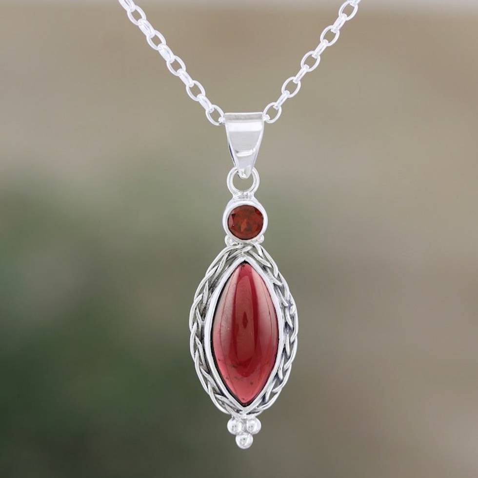 Hand Made Garnet and Sterling Silver Pendant Necklace 'Sweet Berry' Item ID: 2669943009