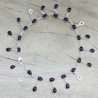 Hand Made Garnet Sterling Silver Charm Anklet India 'Starry Allure in Red' Item ID: 2669943956
