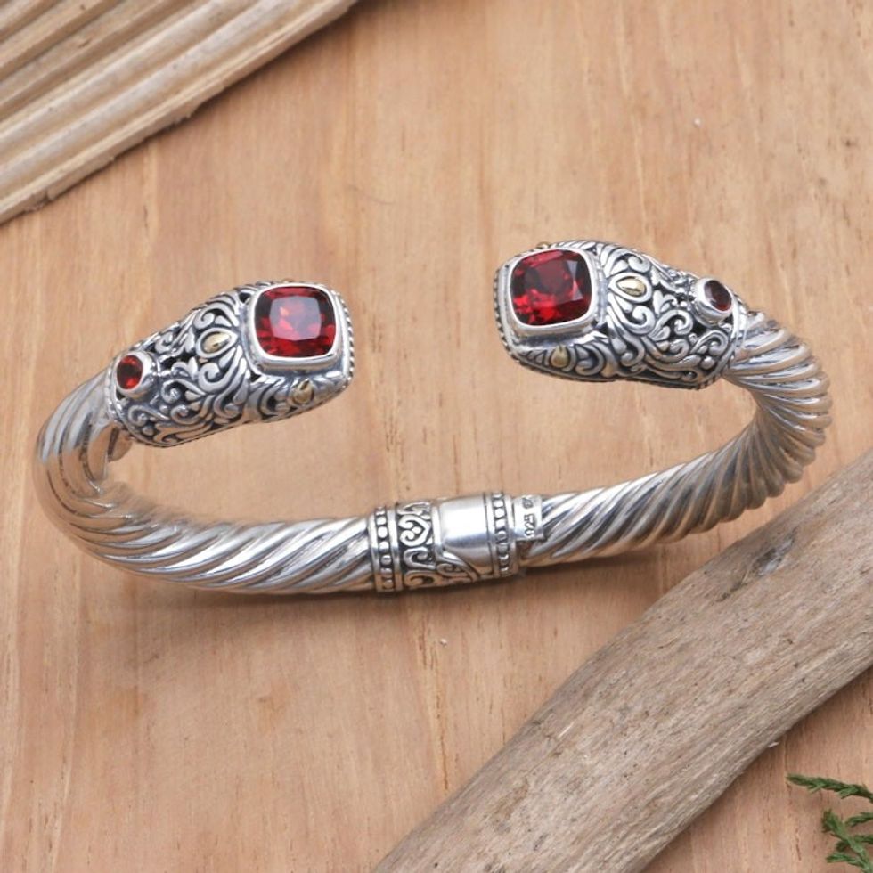 Hand Made Gold-Accented Garnet Cuff Bracelet 'Burning Desire' Item ID: 2669922352