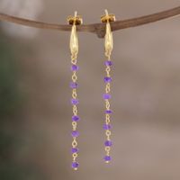 Hand Made Gold-Plated Amethyst Dangle Earrings 'Golden Torrent in Purple' Item ID: 2671787850