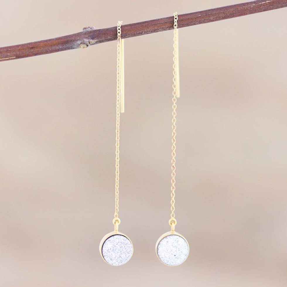 Hand Made Gold Plated Druzy Quartz Dangle Earrings 'Hanging Star in White' Item ID: 2671789395