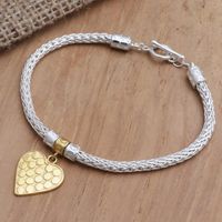 Hand Made Gold-Plated Heart Charm Bracelet from Bali 'Golden Romance' Item ID: 2671745348