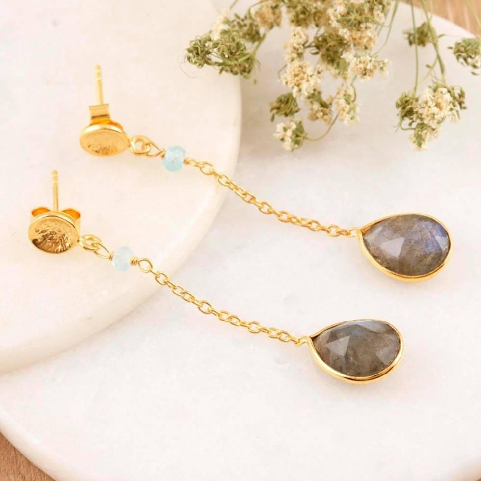 Hand Made Gold-Plated Labradorite Dangle Earrings 'After Dinner' Item ID: 2671787372