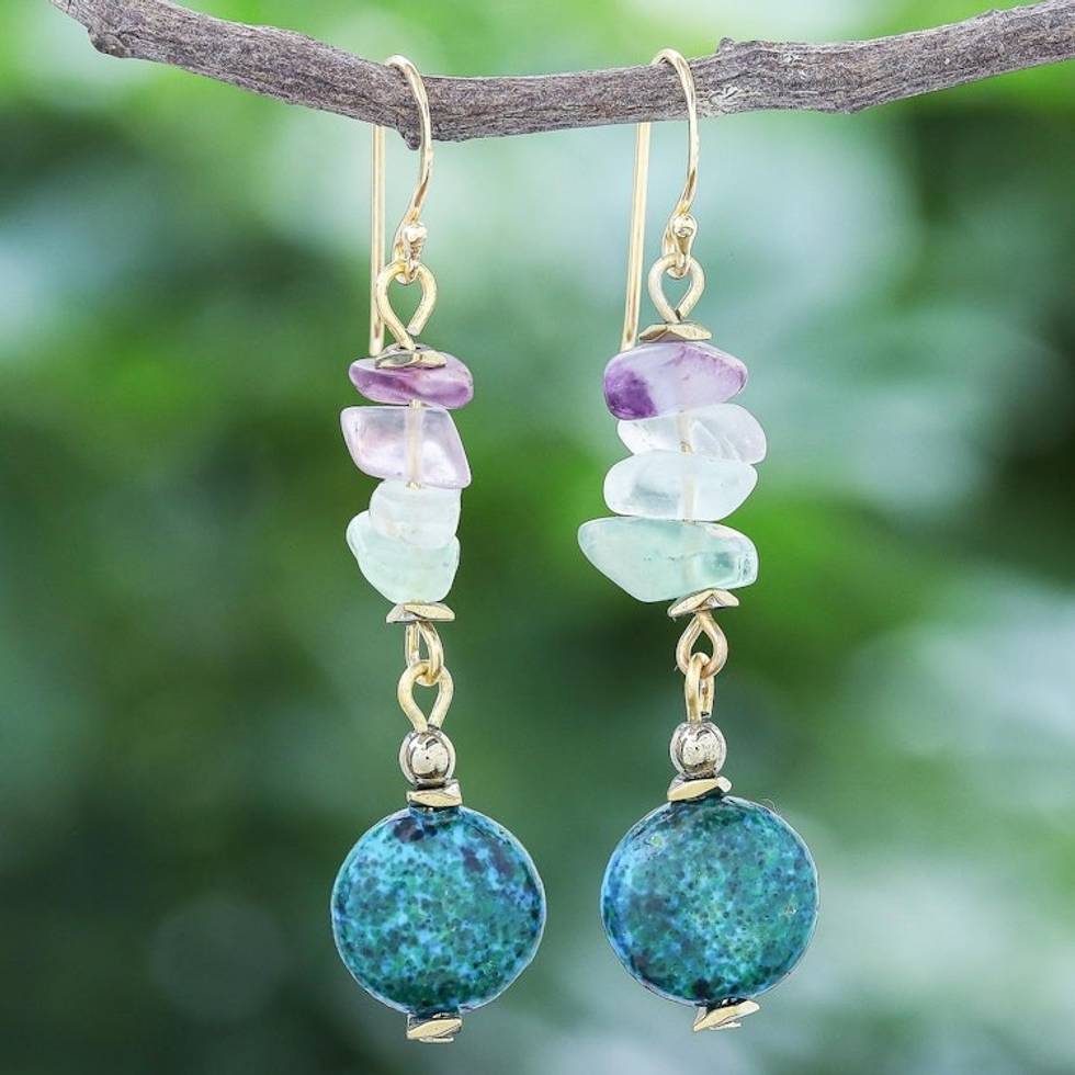 Hand Made Gold-Plated Multi-Gemstone Dangle Earrings 'Venus Garden' Item ID: 2671800039