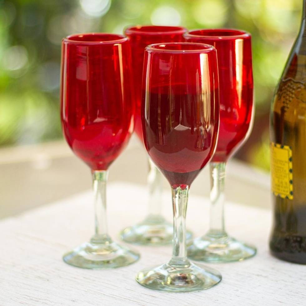 Hand Made Handblown Red Glass Champagne Flute Drinkware Set 'Festive Ruby' Item ID: 2669931882