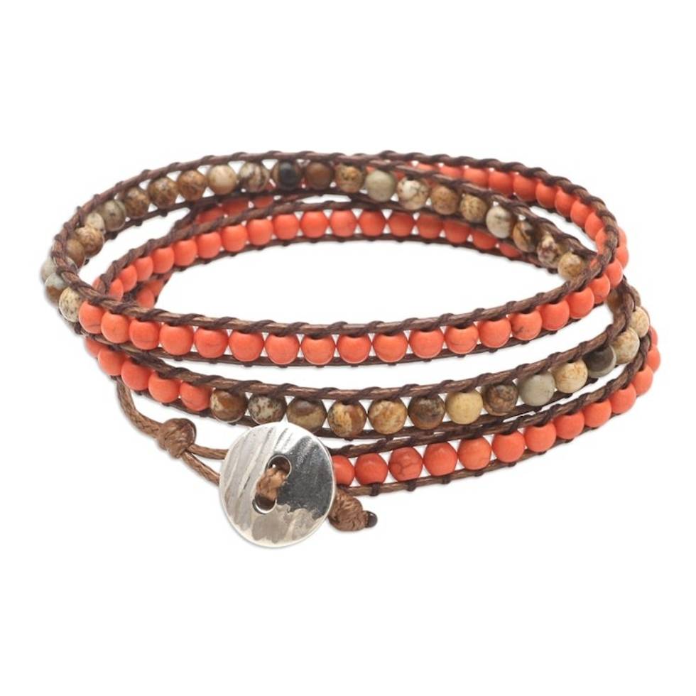 Hand Made Howlite and Jasper Wrap Bracelet 'Under the Skin' Item ID: 2671745535