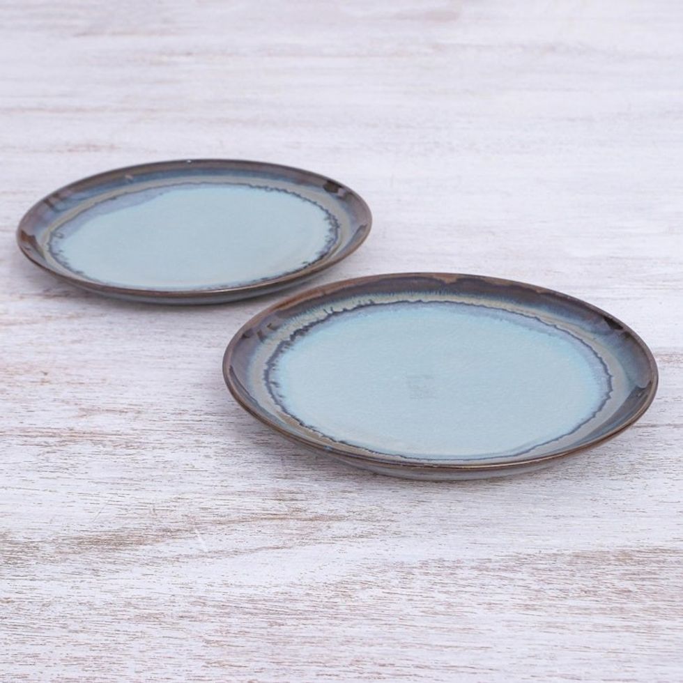 Hand Made Indigo Ceramic Salad Plates Pair 'Blue Crush' Item ID: 2671641180