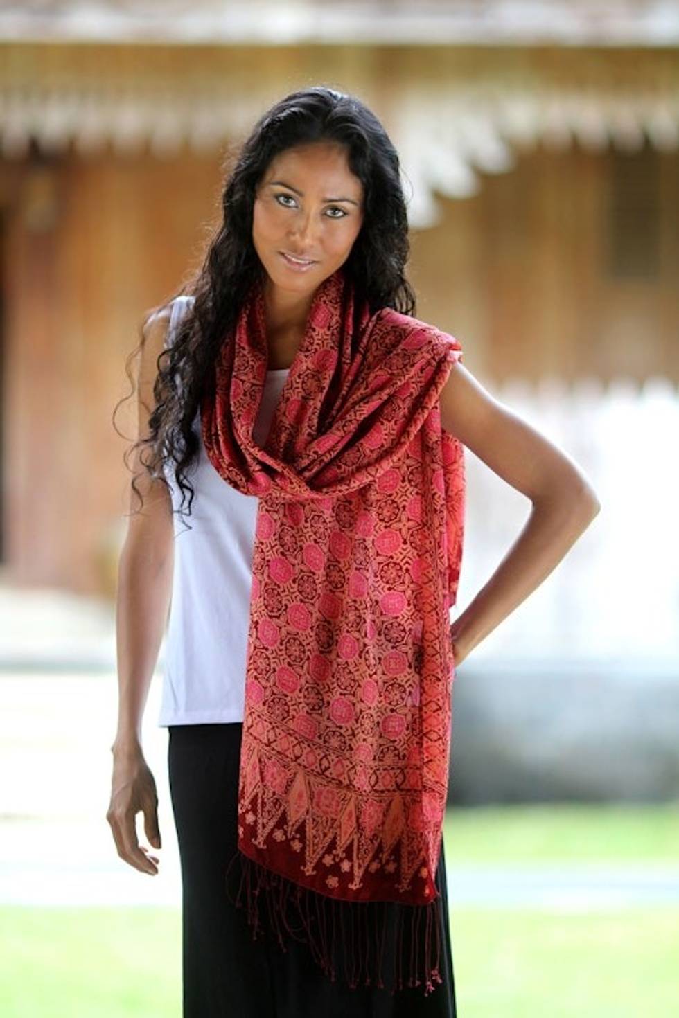 Hand Made Indonesian Silk Shawl 'Scarlet Lily' Item ID: 2671698291