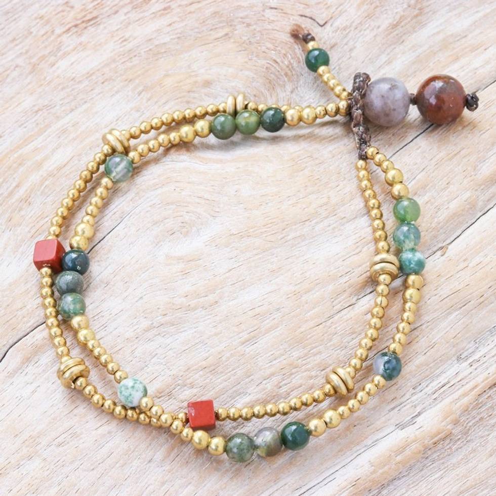 Hand Made Jasper and Agate Beaded Bracelet 'Natural You in Moss' Item ID: 2671800308