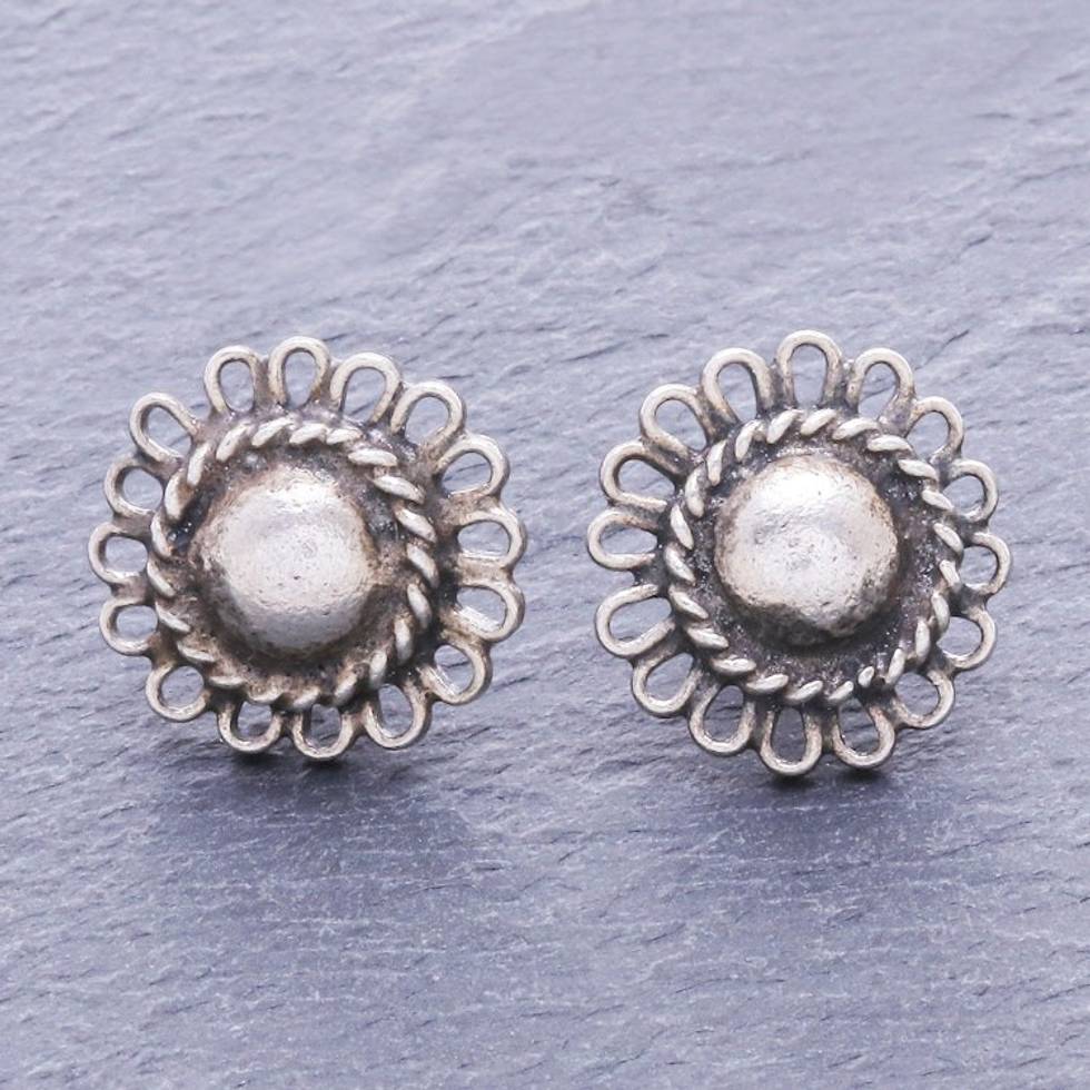 Hand Made Karen Silver Sunflower Button Earrings 'Sunflower Loops' Item ID: 2671799698