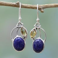 Hand Made Lapis Lazuli Citrine Dangle Earrings India 'Starry Beauties' Item ID: 2671618577