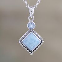 Hand Made Larimar and Blue Topaz Pendant Necklace 'Frosty Fusion' Item ID: 2669924354