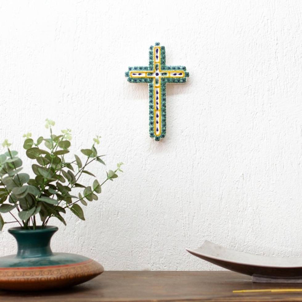 Hand Made Majolica Ceramic Wall Cross from Mexico 'Hope' Item ID: 2671808646