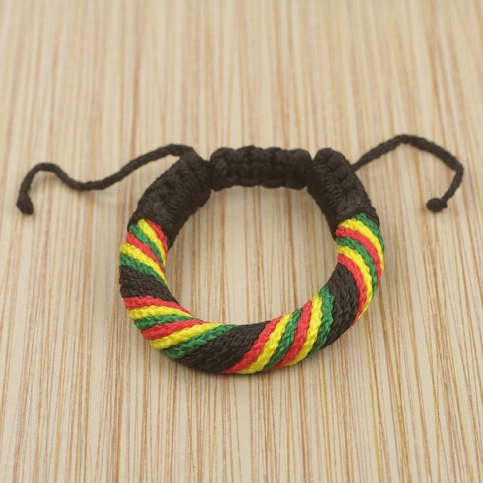 Hand Made Men's Cord Bracelet in Black and Multicolor 'Krobo Sunshine' Item ID: 2671803746
