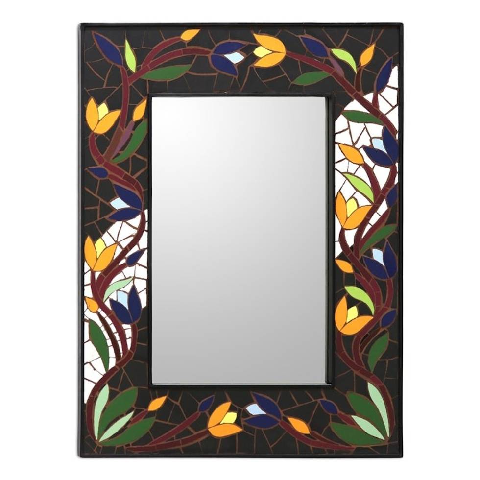 Hand Made Mosaic Ceramic Wall Mirror 'Tantalizing Tulips' Item ID: 2671794482
