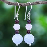 Hand Made Multi-Gemstone Sterling Silver Dangle Earrings 'All Seasons' Item ID: 2671799920