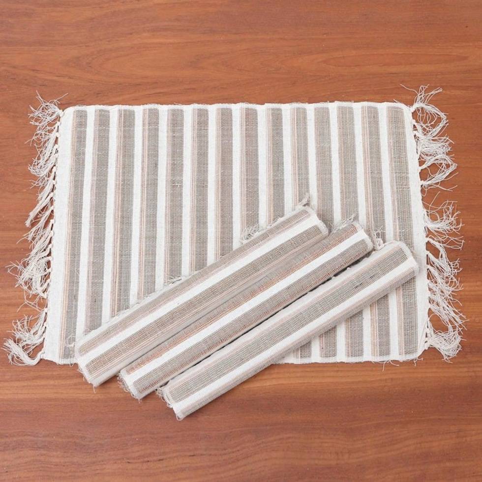 Hand Made Natural Fiber and Cotton Placemats Set of 4 'White Woods' Item ID: 2669891866
