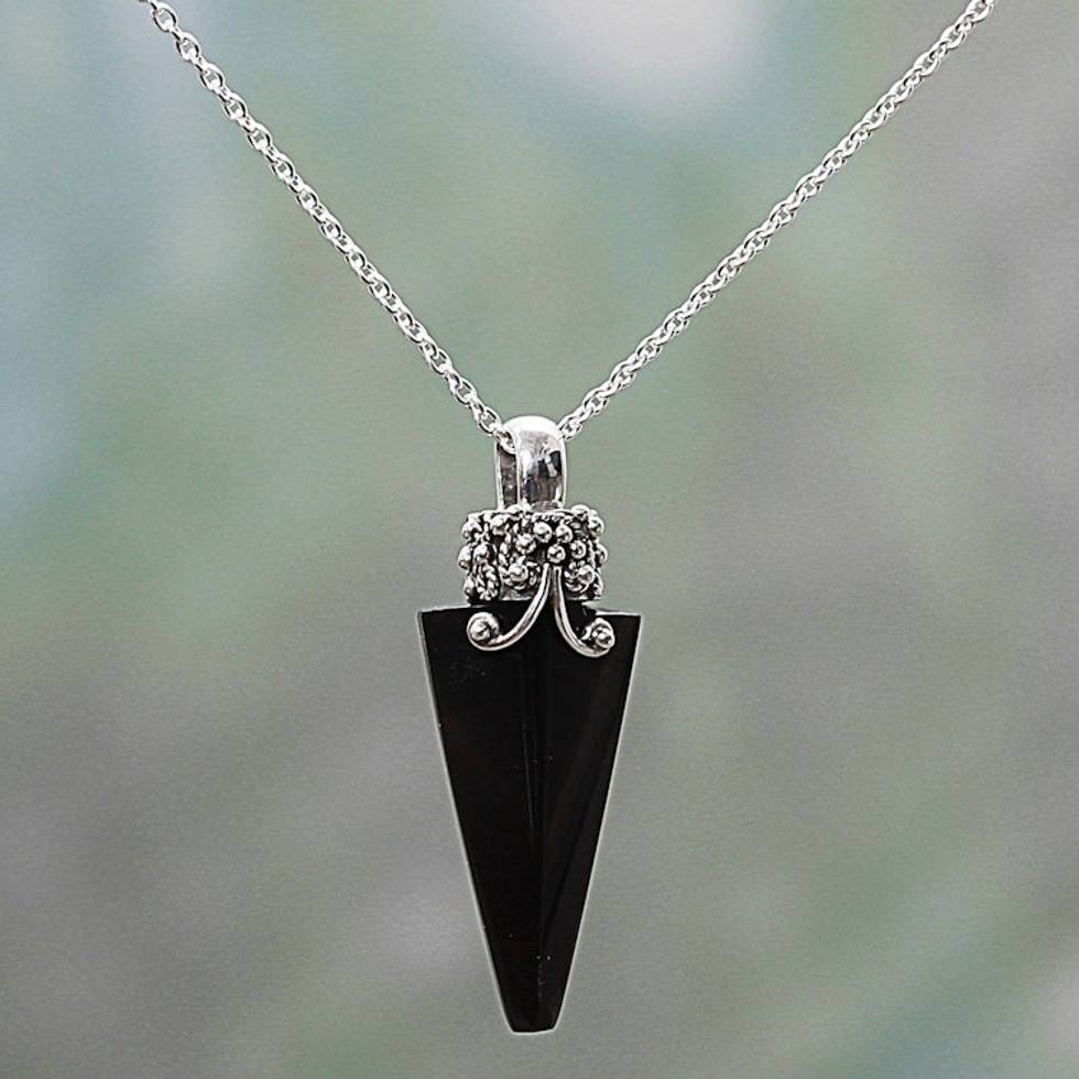 Hand Made Onyx Sterling Silver Pendant Necklace from India 'Onyx Arrow' Item ID: 2671793573