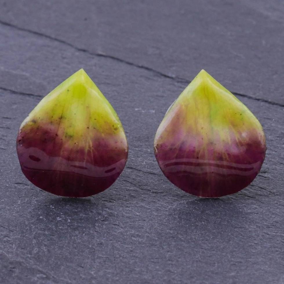 Hand Made Orchid Petal Button Earrings 'Orchid Kiss in Green' Item ID: 2671799881