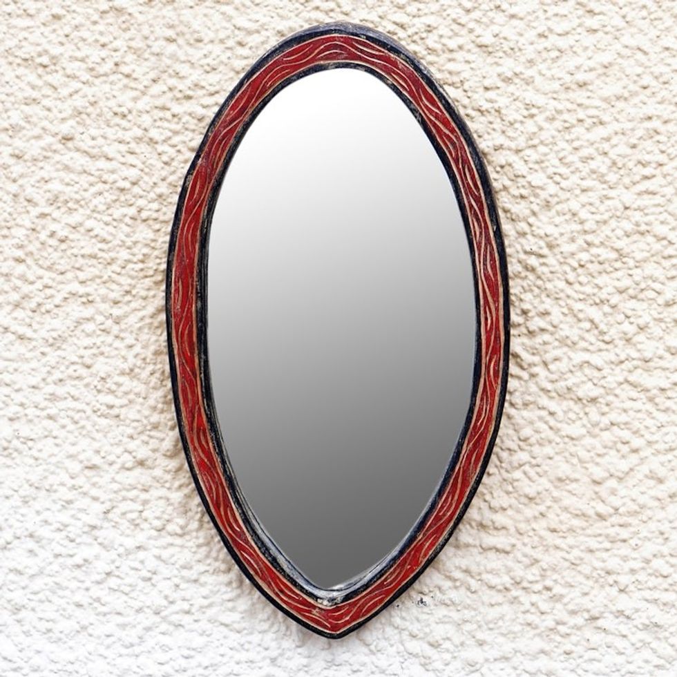 Hand Made Oval Shaped Wood Wall Mirror from West Africa 'Nkosua' Item ID: 2671800852