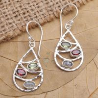 Hand Made Peridot and Garnet Dangle Earrings 'Rainbow Skyline' Item ID: 2669920810