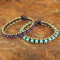 Hand Made Quartz and Resin Beaded Bracelets Pair 'Blue Purple Aryuveda' Item ID: 2671802764