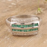 Hand Made Rhodium-Plated Emerald Cocktail Ring 'Mystic Water' Item ID: 2671787364