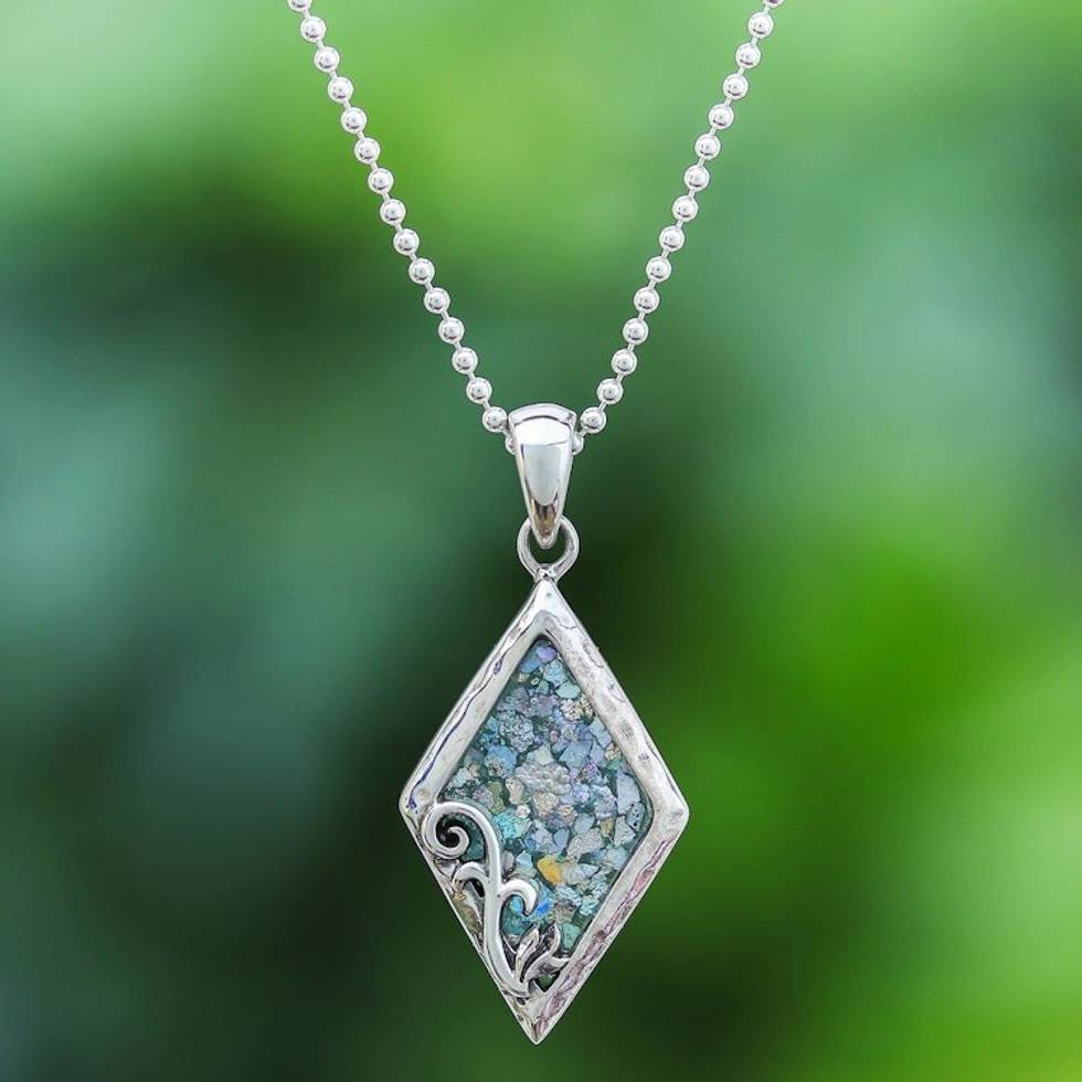 Hand Made Roman Glass Pendant Necklace 'Nautical Sparkle' Item ID: 2671800041