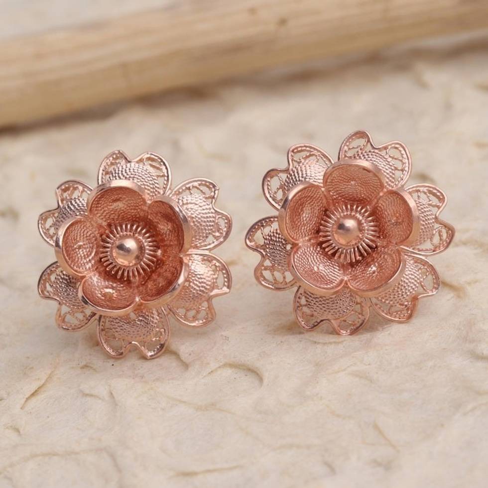 Hand Made Rose Gold Plated Flower Button Earrings 'Grateful Flower' Item ID: 2671745272
