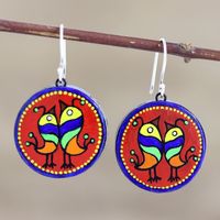 Hand Made Round Ceramic Dangle Earrings from India 'Joyful Birds' Item ID: 2671789354