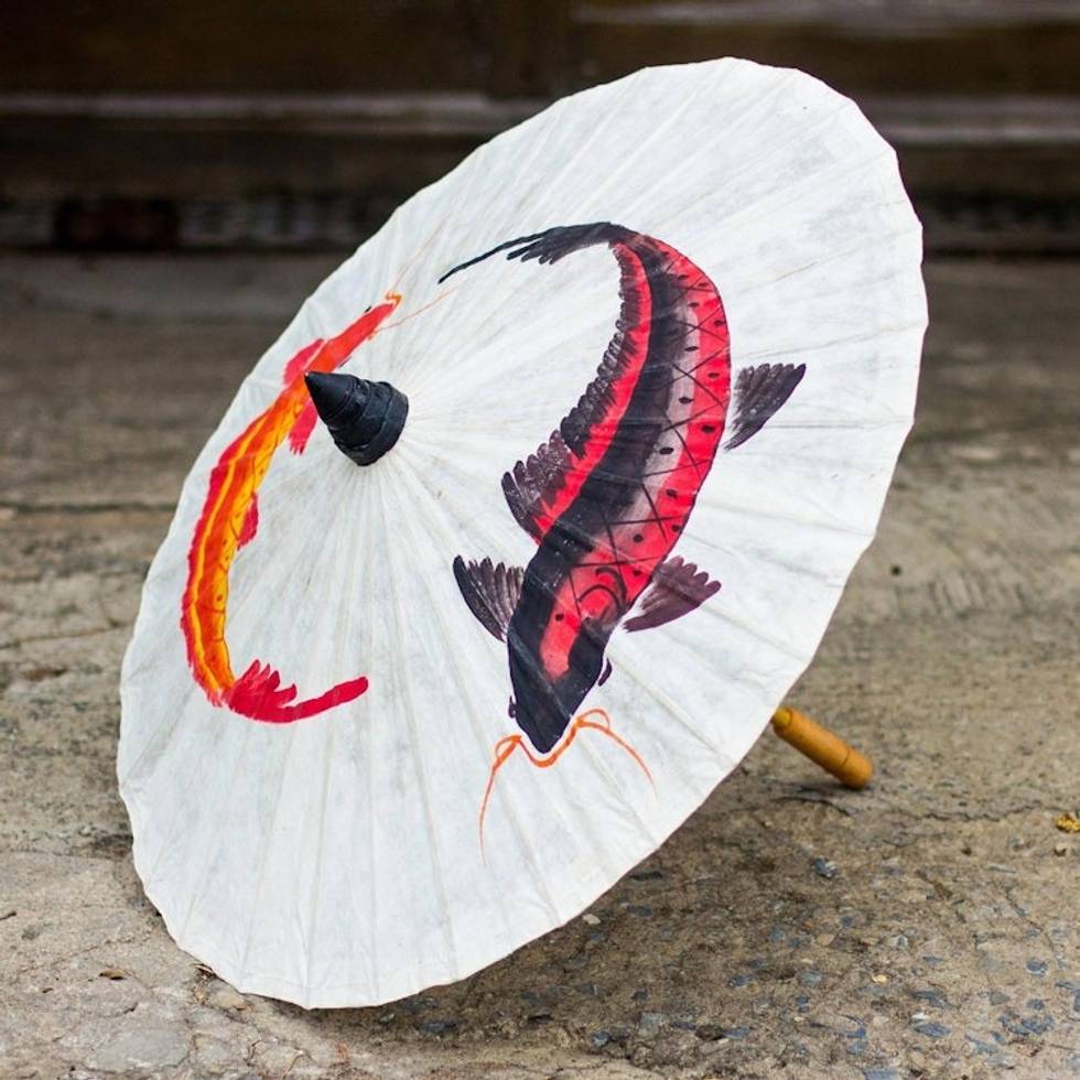 Hand Made Saa Paper Parasol with Koi Motifs 'Lucky Koi' Item ID: 2671802819