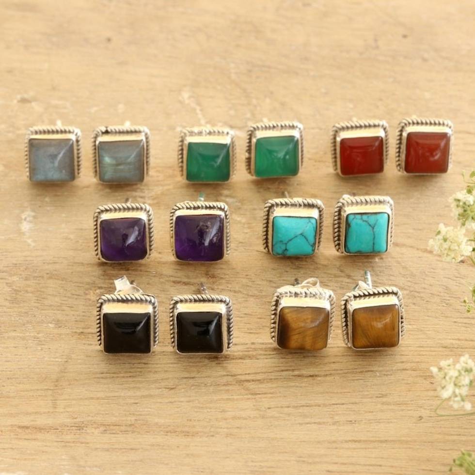 This set of stud earrings is everything I need - the variety of gemstones is perfect, and their sterling settings are beautiful and simple. I will wear these most day!