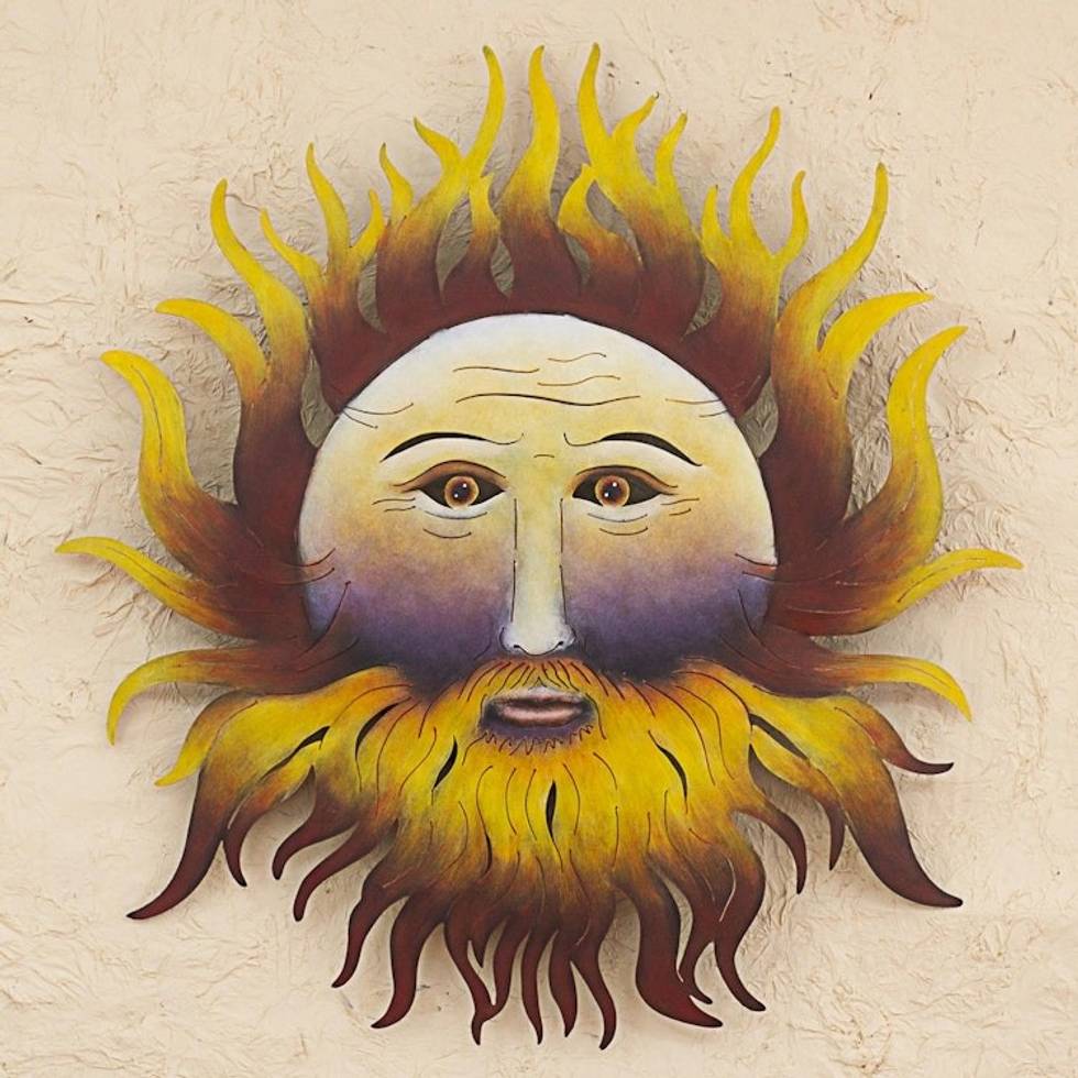 Hand Made Steel Wall Sculpture of Sun Face from Mexico 'Bearded Sun' Item ID: 2671808710