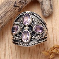 Hand Made Sterling Silver Amethyst Multistone Ring Indonesia 'Purple Crest' Item ID: 2671667410