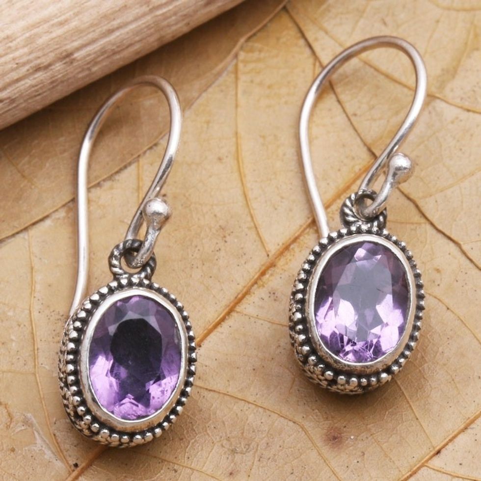 Hand Made Sterling Silver and Amethyst Dangle Earrings 'Soft Music in Purple' Item ID: 2671747175