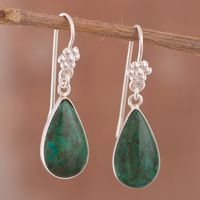 Hand Made Sterling Silver and Chrysocolla Dangle Earrings 'Inca Aesthetic' Item ID: 2669919689