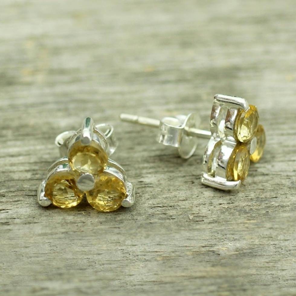 Hand Made Sterling Silver and Citrine Stud Earrings 'Chennai Stars' Item ID: 2671794244
