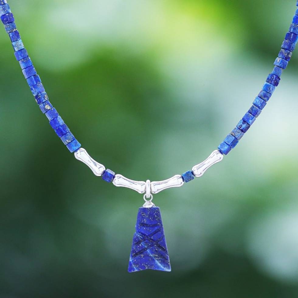 Hand Made Sterling Silver and Lapis Lazuli Pendant Necklace 'Shrouded Origins' Item ID: 2671640968