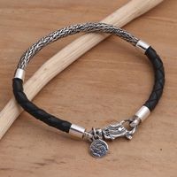 Hand Made Sterling Silver and Leather Braided Charm Bracelet 'Fish Symmetry' Item ID: 2671745086