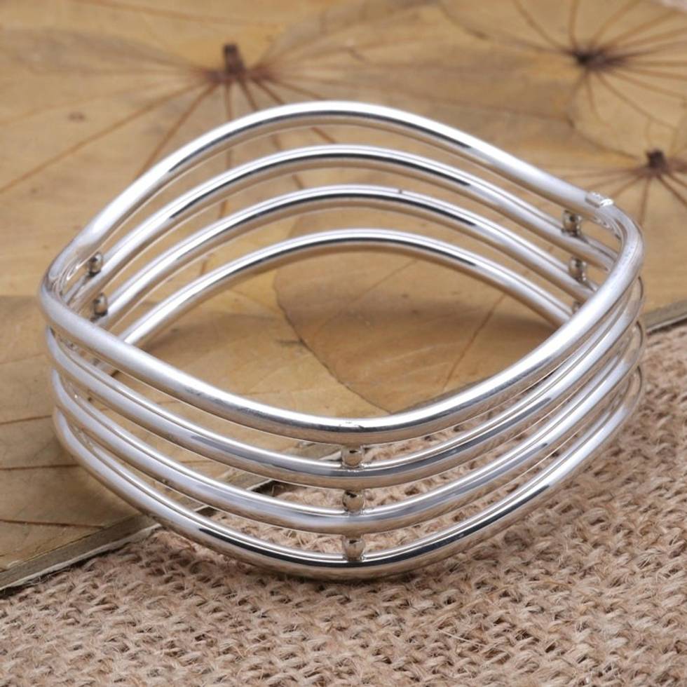 Hand Made Sterling Silver Bangle Bracelet 'Water Waves' Item ID: 2671746042