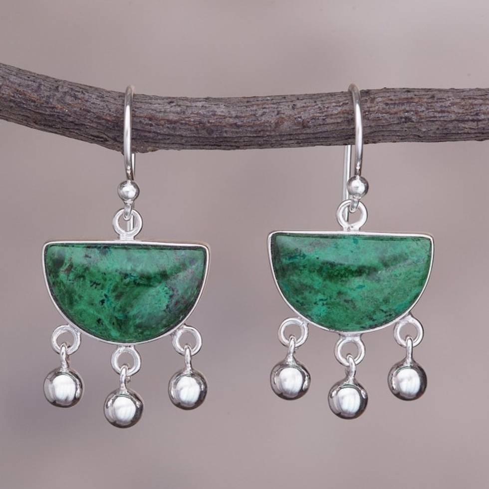 Hand Made Sterling Silver Chrysocolla Dangle Earrings 'Beautiful Universe' Item ID: 2671399943