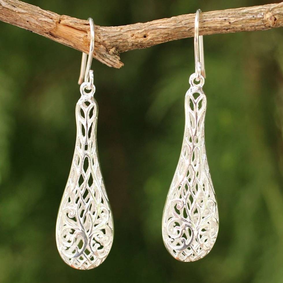 Hand Made Sterling Silver Dangle Earrings 'Thai Lace' Item ID: 2671803181